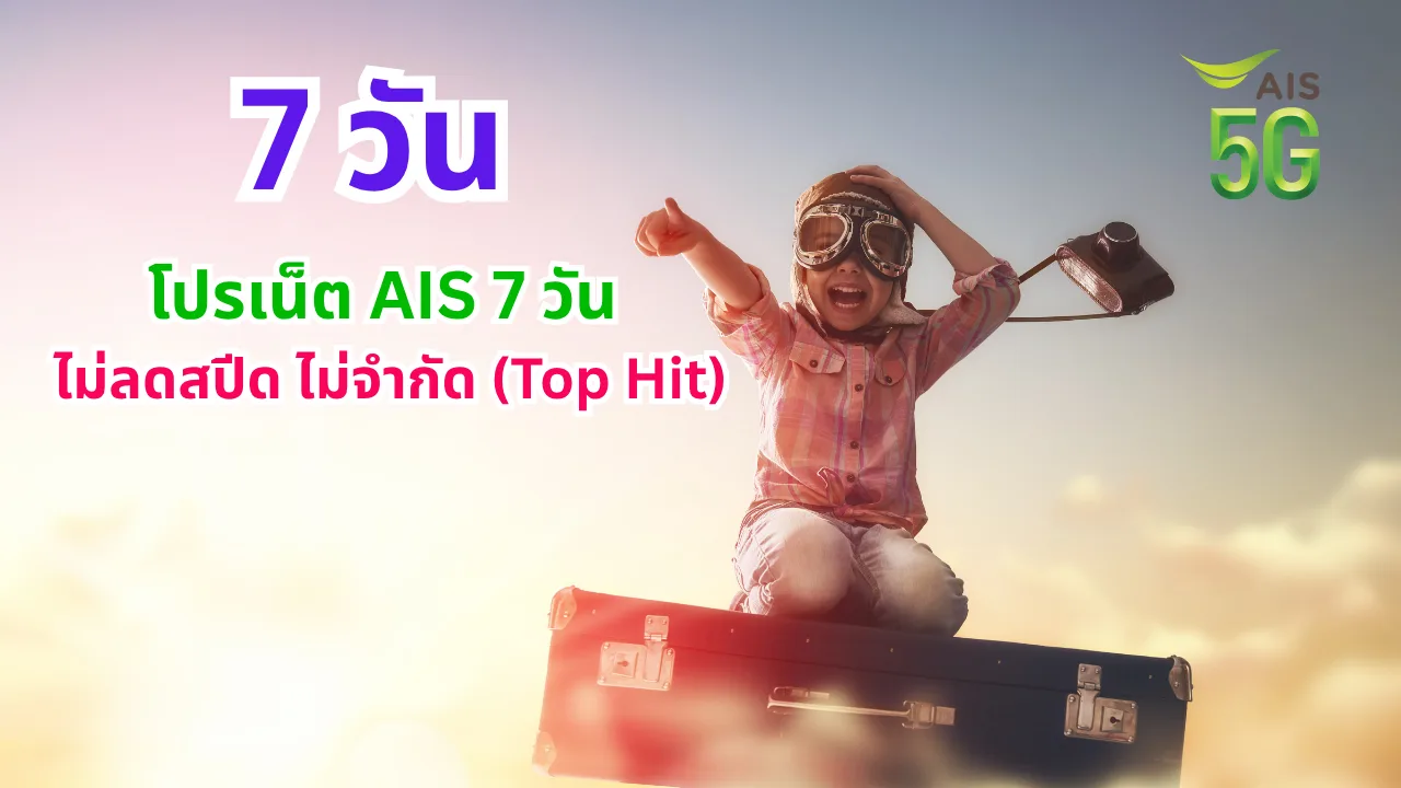 โปรเน็ต AIS 7 วัน ไม่ลดสปีด ไม่จำกัด (Top Hit)