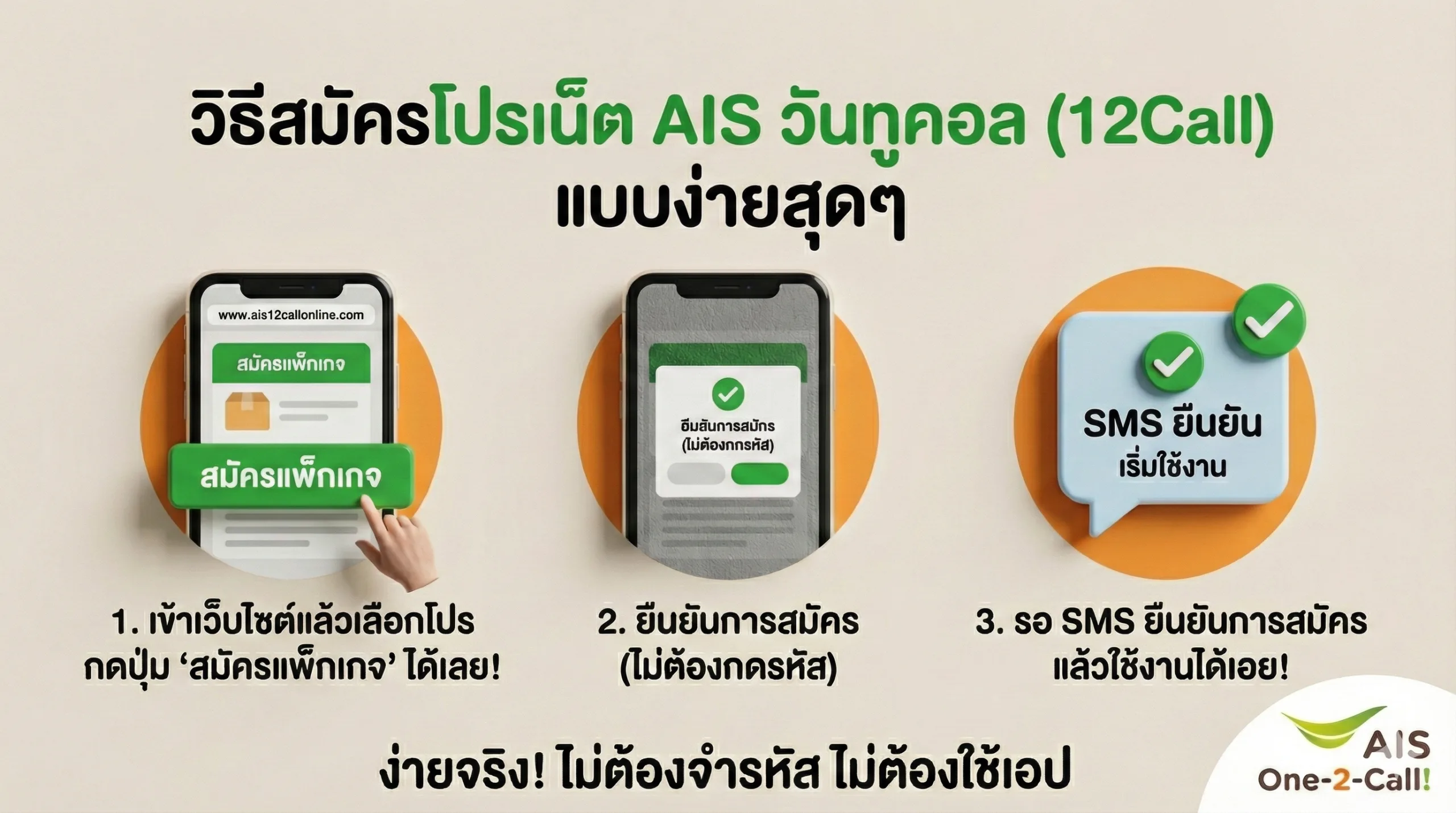 วิธีสมัครโปรเน็ต AIS วันทูคอล (12Call)